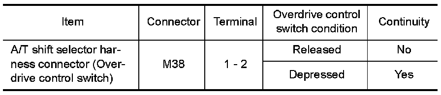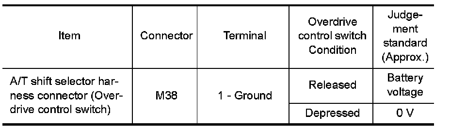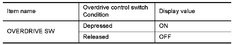3.Read out "OVERDRIVE SW". Check the signal of overdrive control switch is indicated properly.