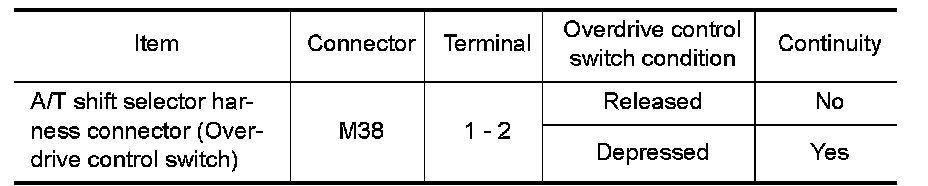 - Check continuity between A/T shift selector harness connector terminals.