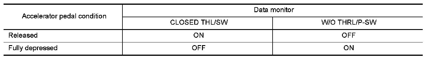 3.Read out "CLOSED THL/SW" and "W/O THRL/P-SW" depressing and releasing accelerator pedal.