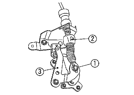 2.If NG, check again with control cable (2) disconnected from manual shaft (3) of A/T assembly. Refer to step 1.