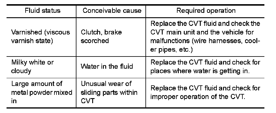 (122 to 176�F), then inspect the amount of CVT fluid and replenish if necessary.