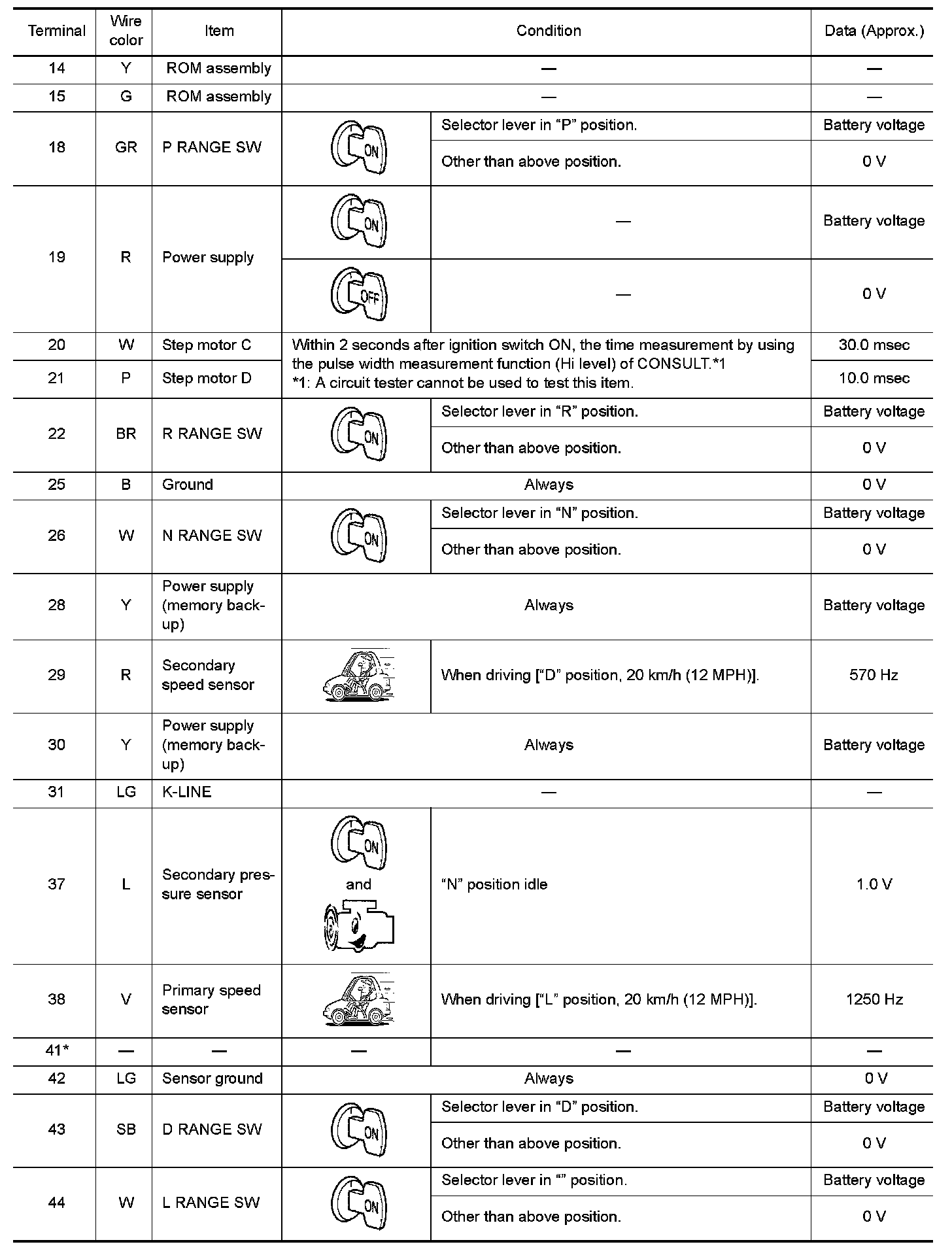 Data are reference values and are measured between each terminal and ground.