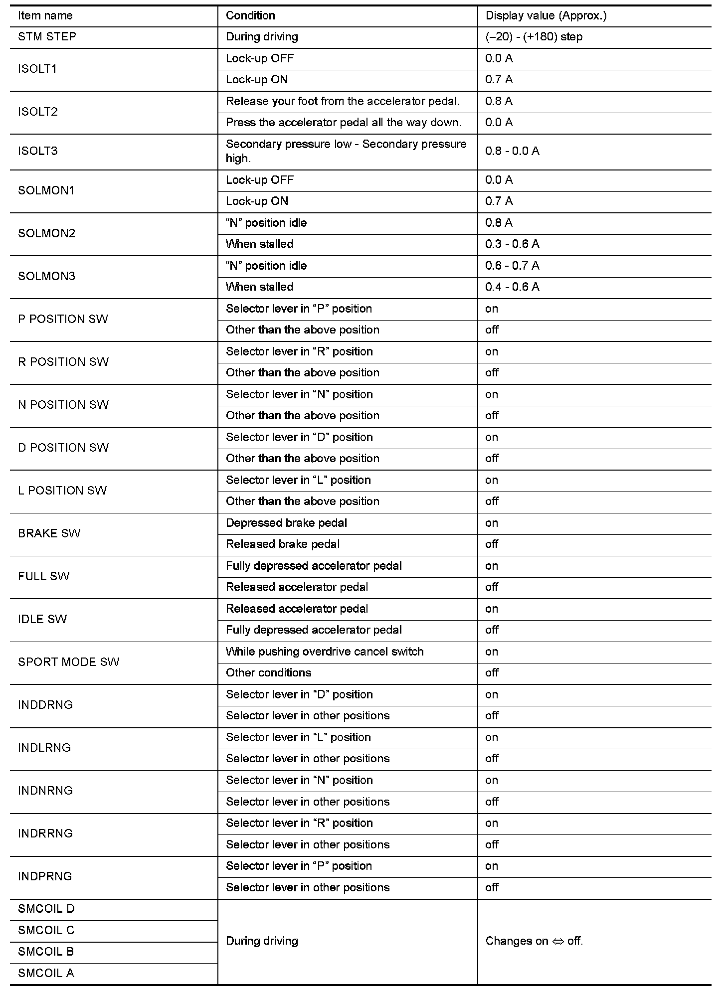 If an unexpected signal is sent from the solenoid to the TCM, the secondary pressure solenoid is turned OFF