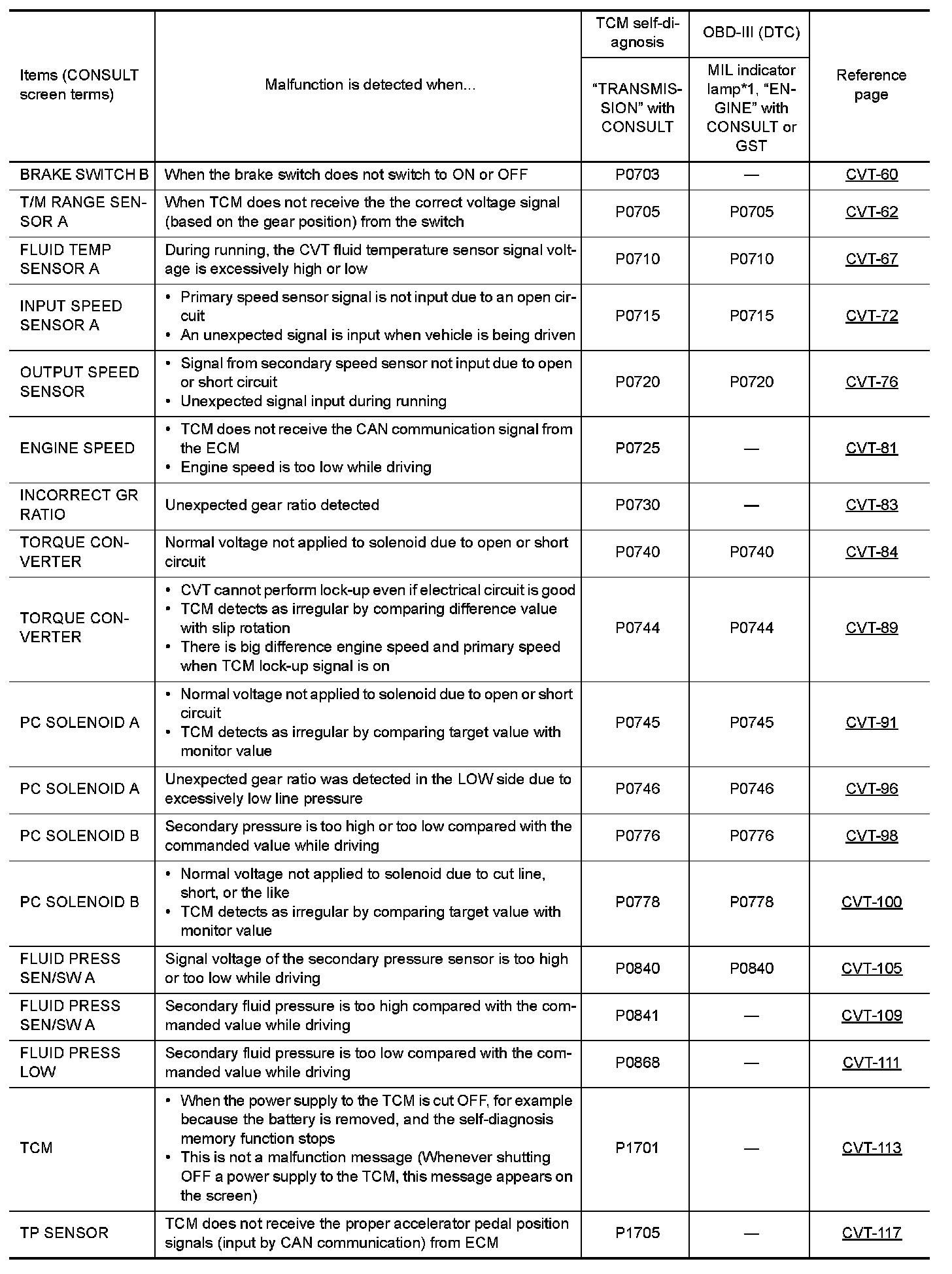 CVT system for malfunction-diagnostic purposes. The TCM is capable of diagnosing malfunctioning parts while the ECM can store malfunctions in its memory.