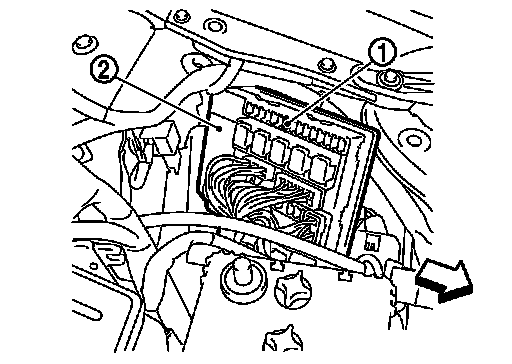 1.Remove fuel pump fuse (1) located in IPDM E/R (2).
