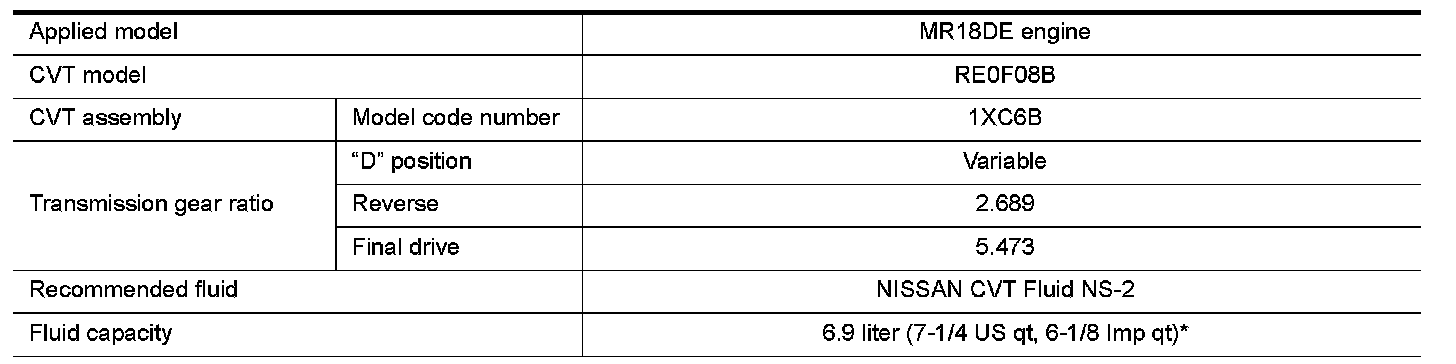 *: The fluid capacity is the reference value. Check the fluid level with CVT fluid level gauge.