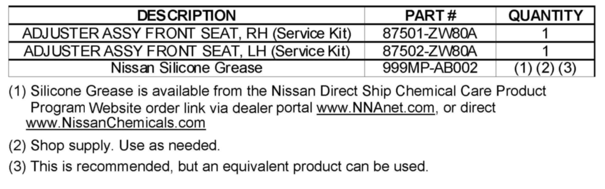 2007-2012 VERSA; DRIVER OR PASSENGER SEAT HAS SLIGHT MOVEMENT, OR WILL NOT MOVE FORWARD AND BACKWARD
