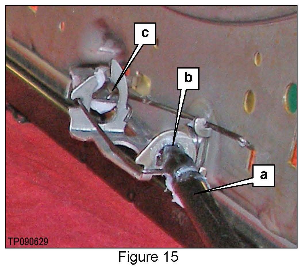 a. Insert the slide release handle ("a") into both brackets where noted ("b") in Figure 15.