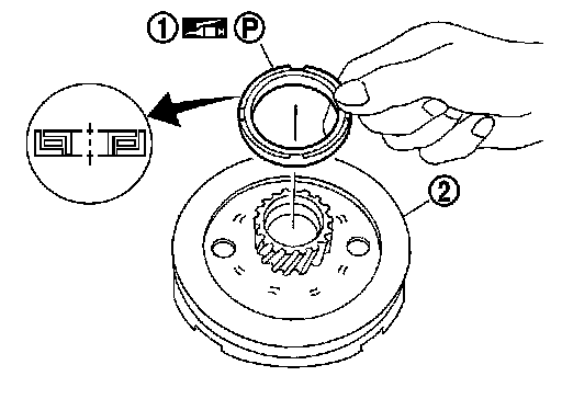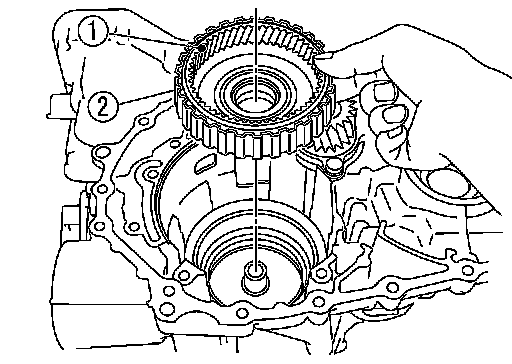 9.Install rear internal gear (1) and forward clutch hub (2) as a set into forward clutch drum.