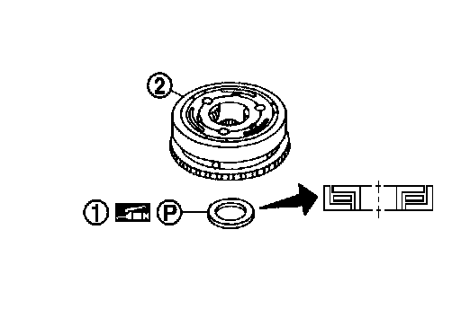 Align pawls of thrust washer (1) with holes of overrun clutch hub (2).