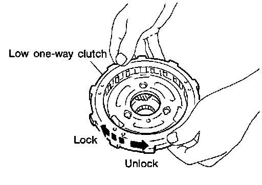 15.Check that low one-way clutch rotates counterclockwise around front planetary carrier. Then try to turn it clockwise and check that it is locked.