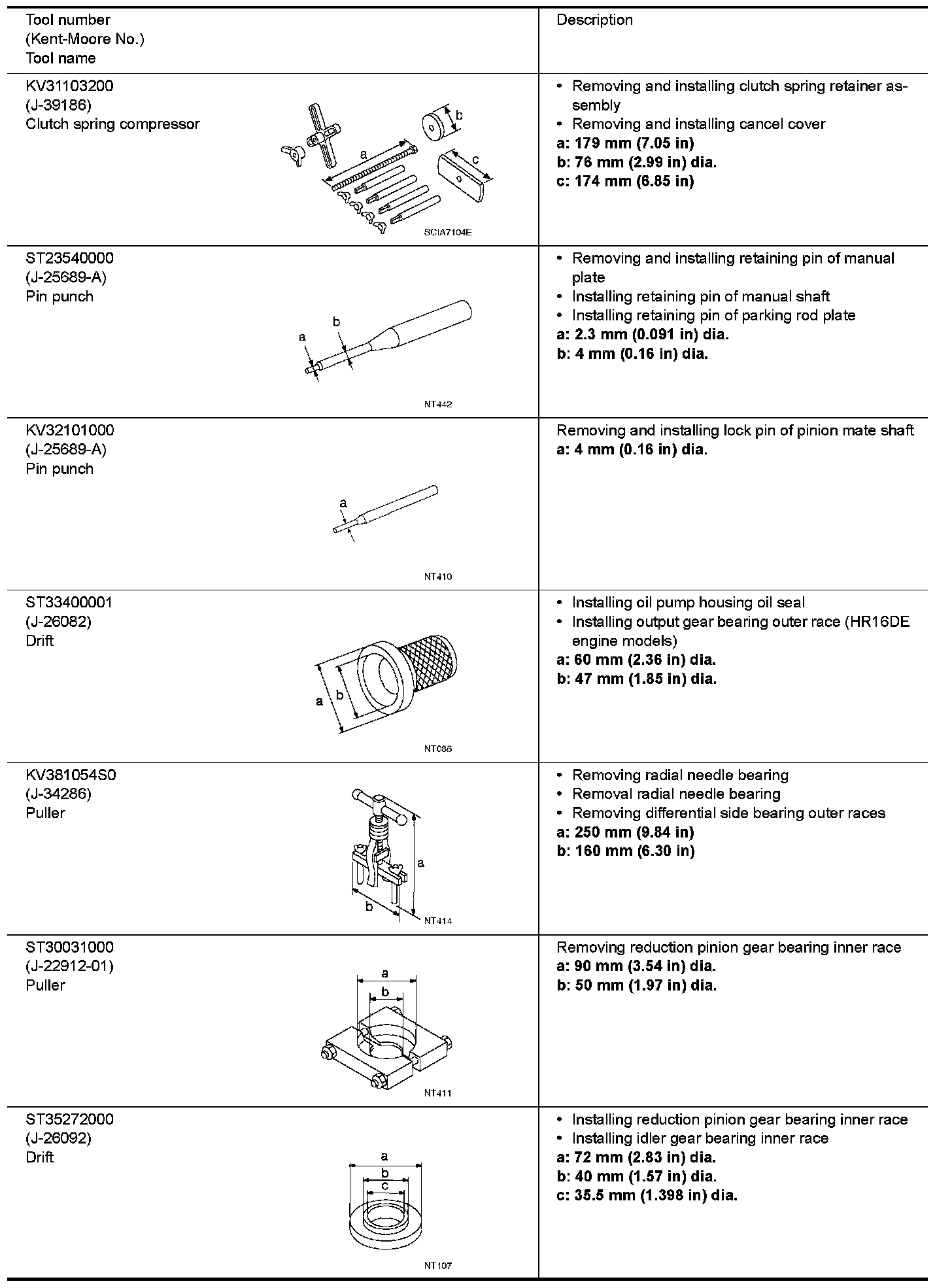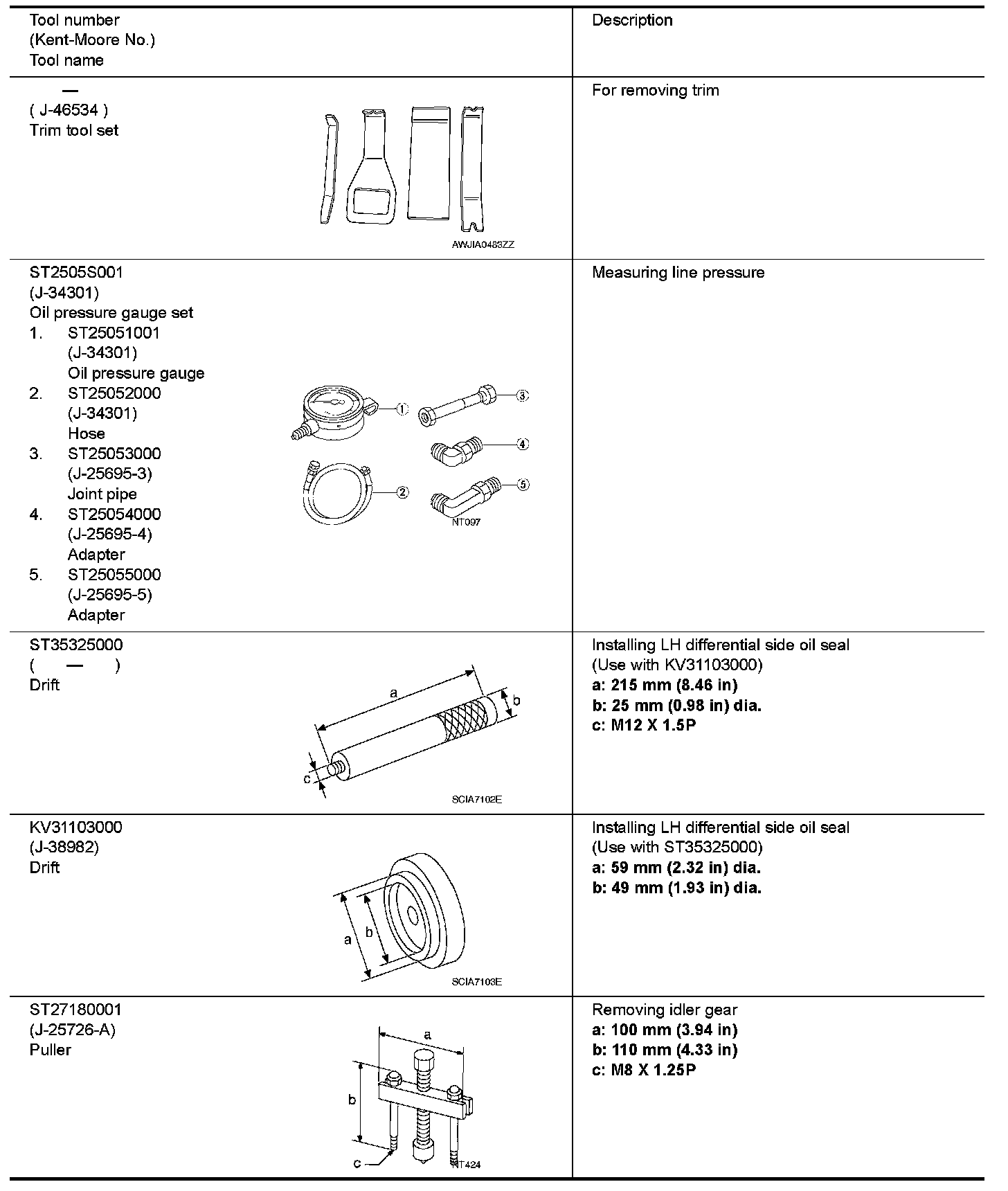 The actual shapes of Kent-Moore tools may differ from those of special service tools illustrated here.