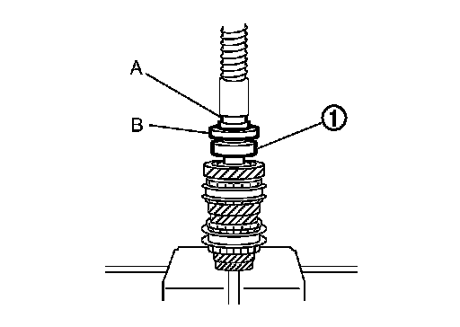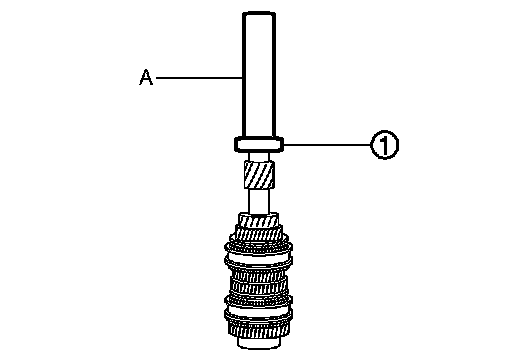 1.Remove input shaft rear bearing bolt (1) using Tool (A).