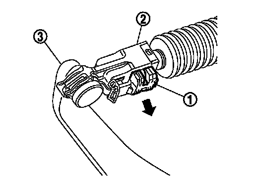 b.Pull the release button (1) of select cable (2) and then remove it from control shaft select lever (3).
