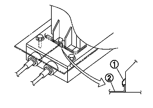 - Make sure that the front/rear pawls (1) of M/T shift selector assembly are in contact with flange of the floor (2).