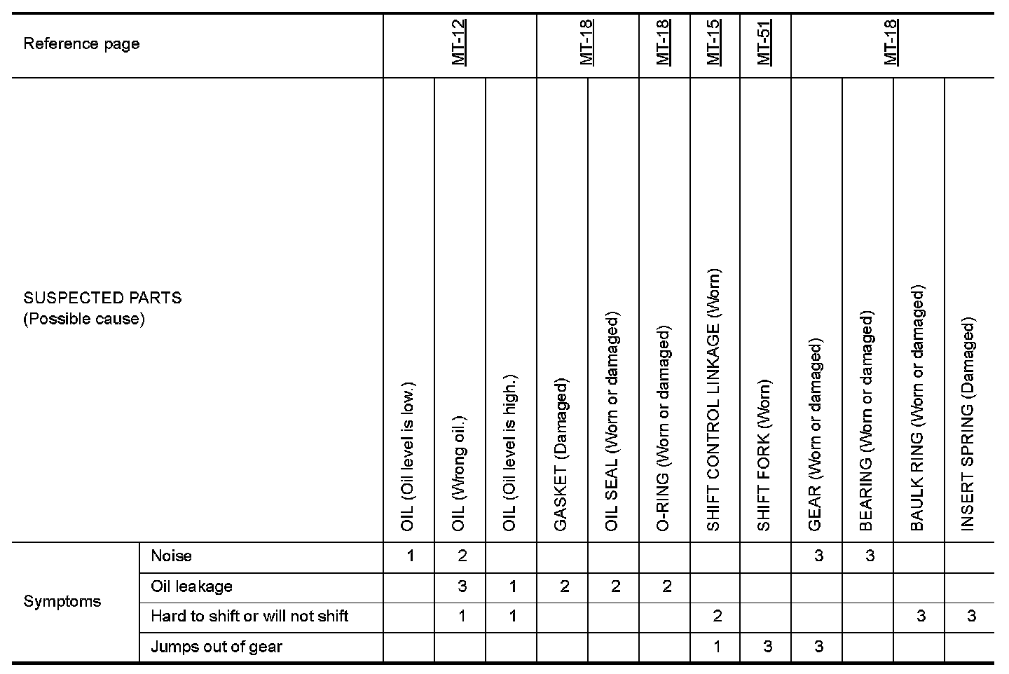 Use the chart below to help you find the cause of the symptom. The numbers indicate the order of the inspection. If necessary, repair or replace these parts.