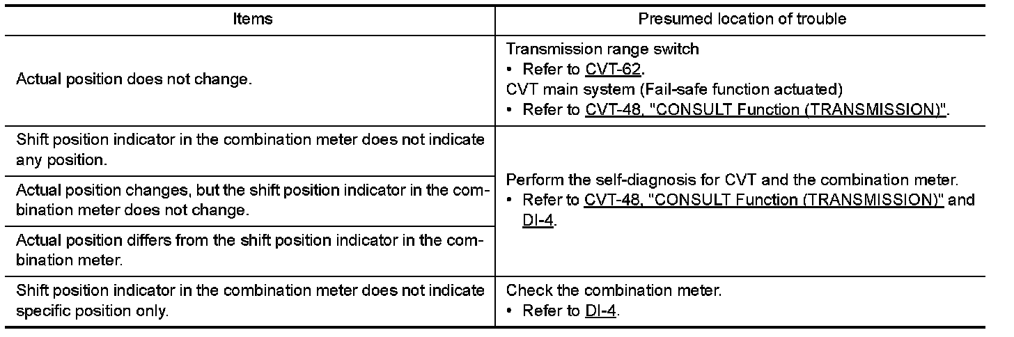 SHIFT POSITION INDICATOR SYMPTOM CHART