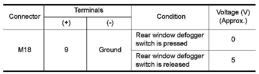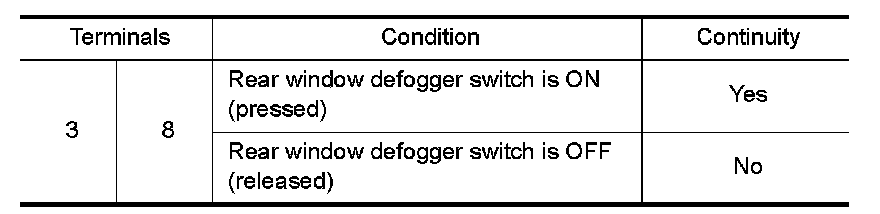 Rear Window Defogger Switch Circuit Inspection