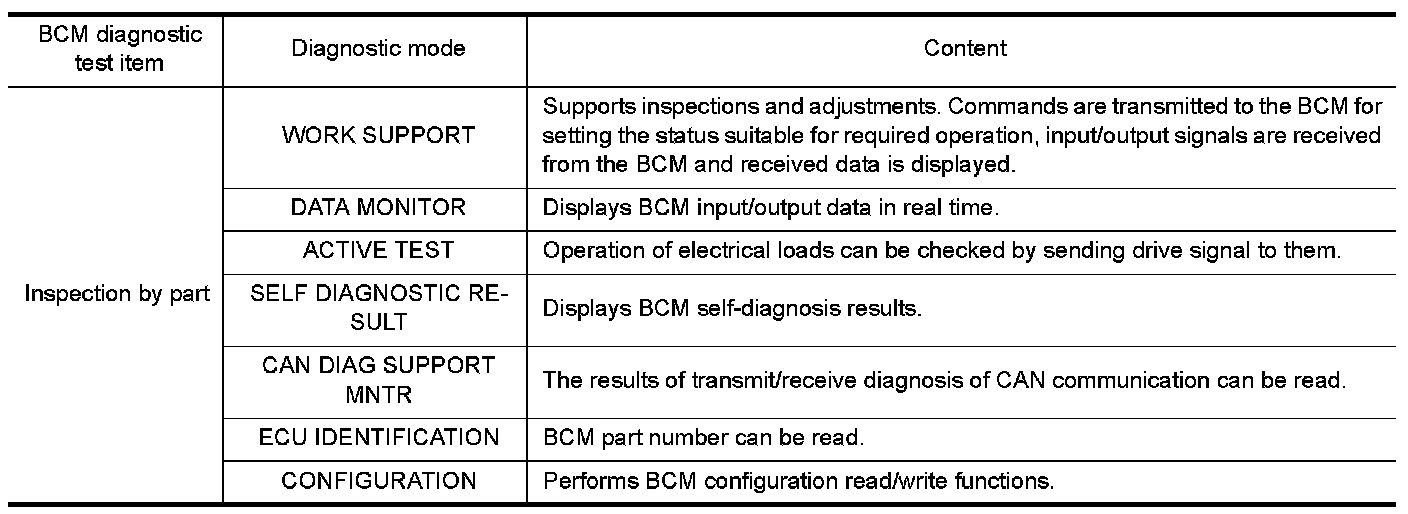 CONSULT can display each diagnostic item using the diagnostic test modes shown following.