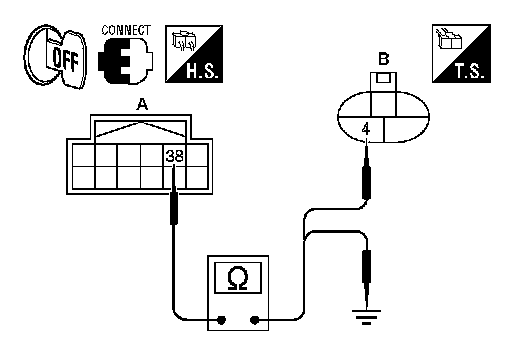 4.Check continuity between IPDM E/R harness connector (A) and ground.