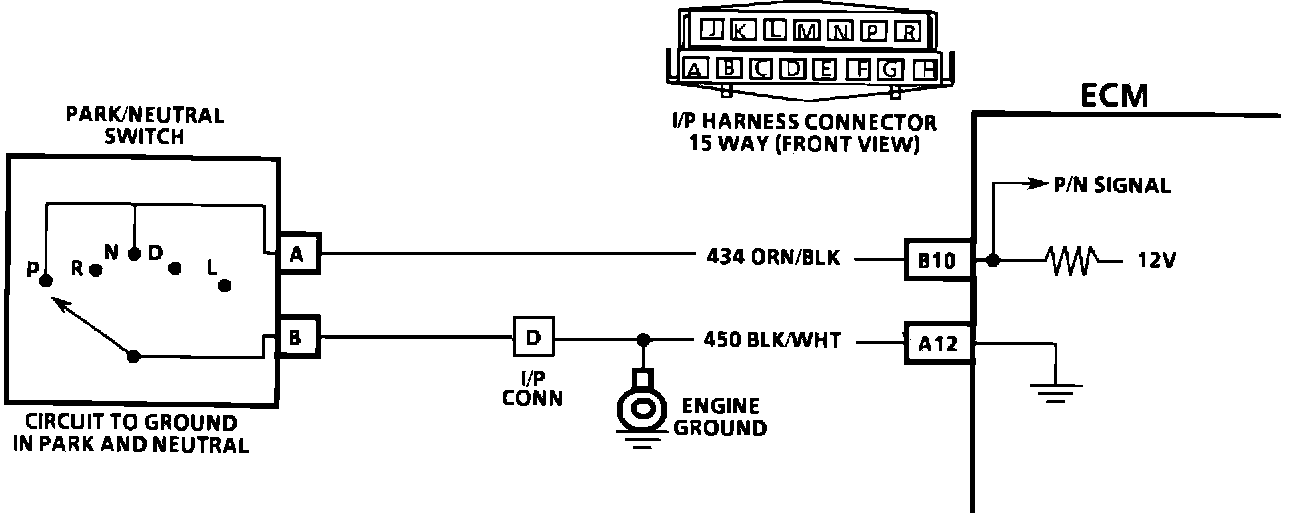 The Park/Neutral (P/N) switch contacts are a part of the neutral start switch and are closed to ground in park or neutral, and open in drive ranges.