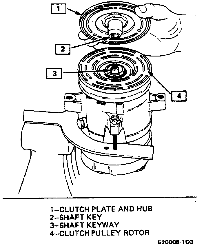 3. Align the shaft key with the shaft keyway and place the clutch plate and the hub assembly onto the compressor shaft.