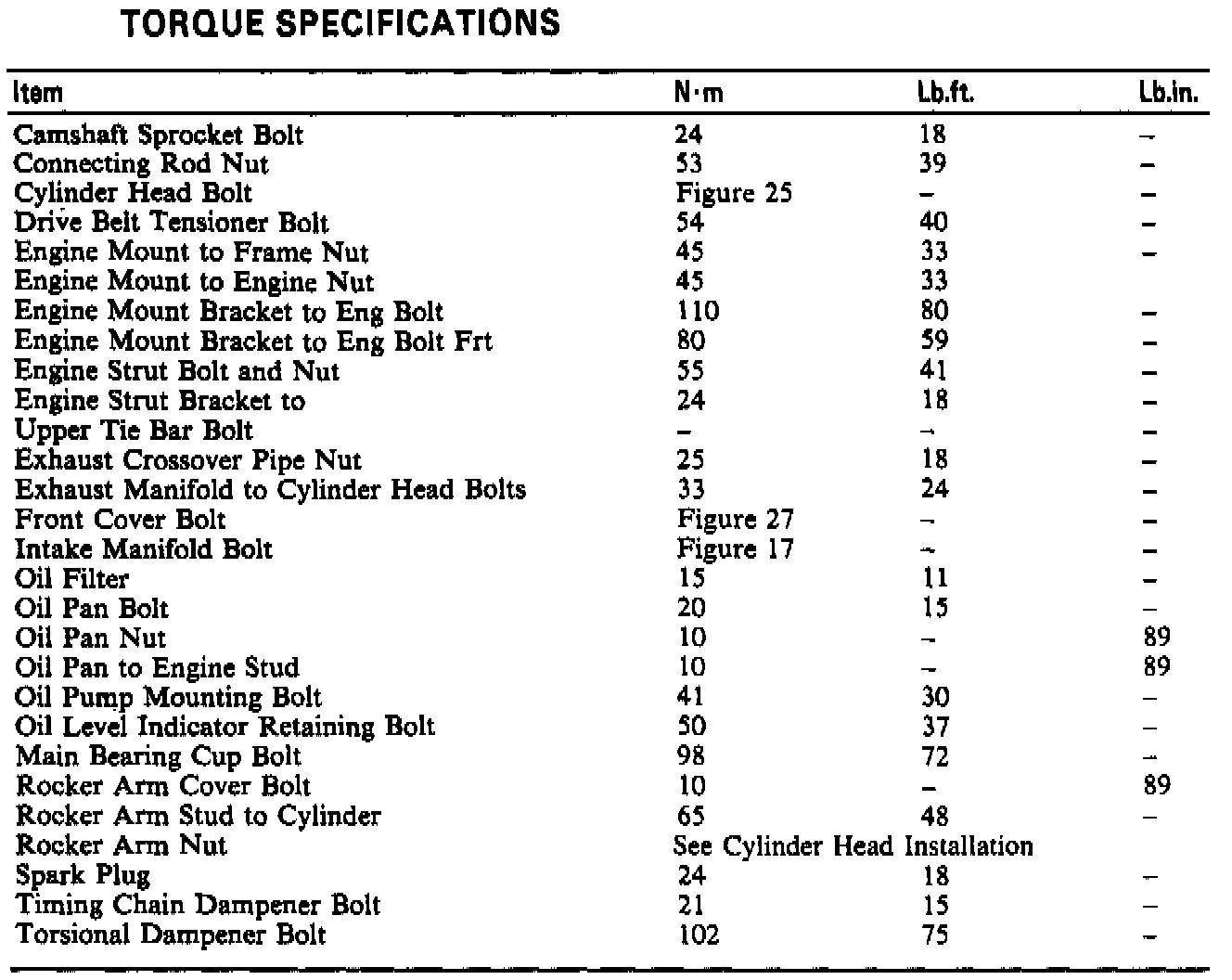 Torque Specifications: