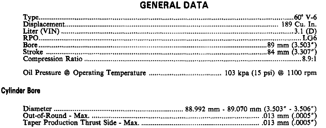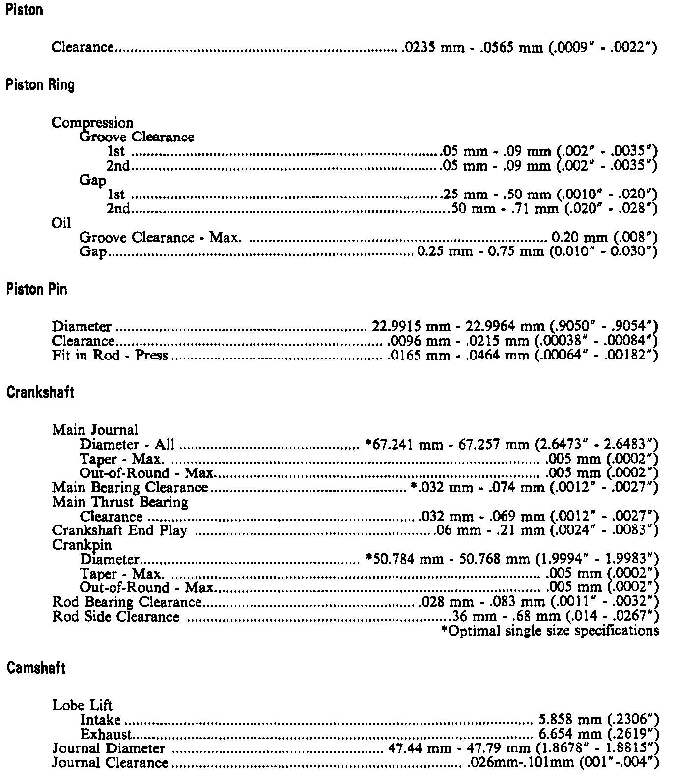 Engine Specifications:
