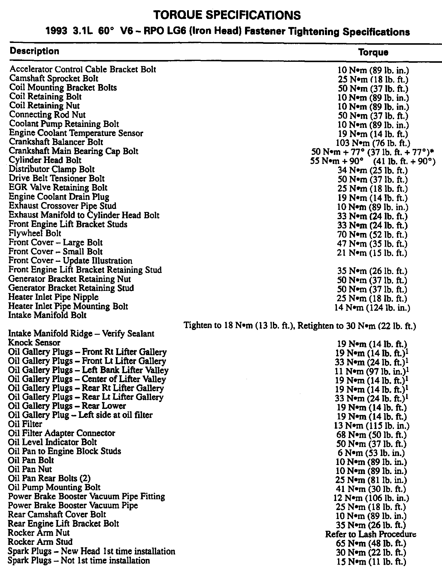 Continued Torque Specifications:
