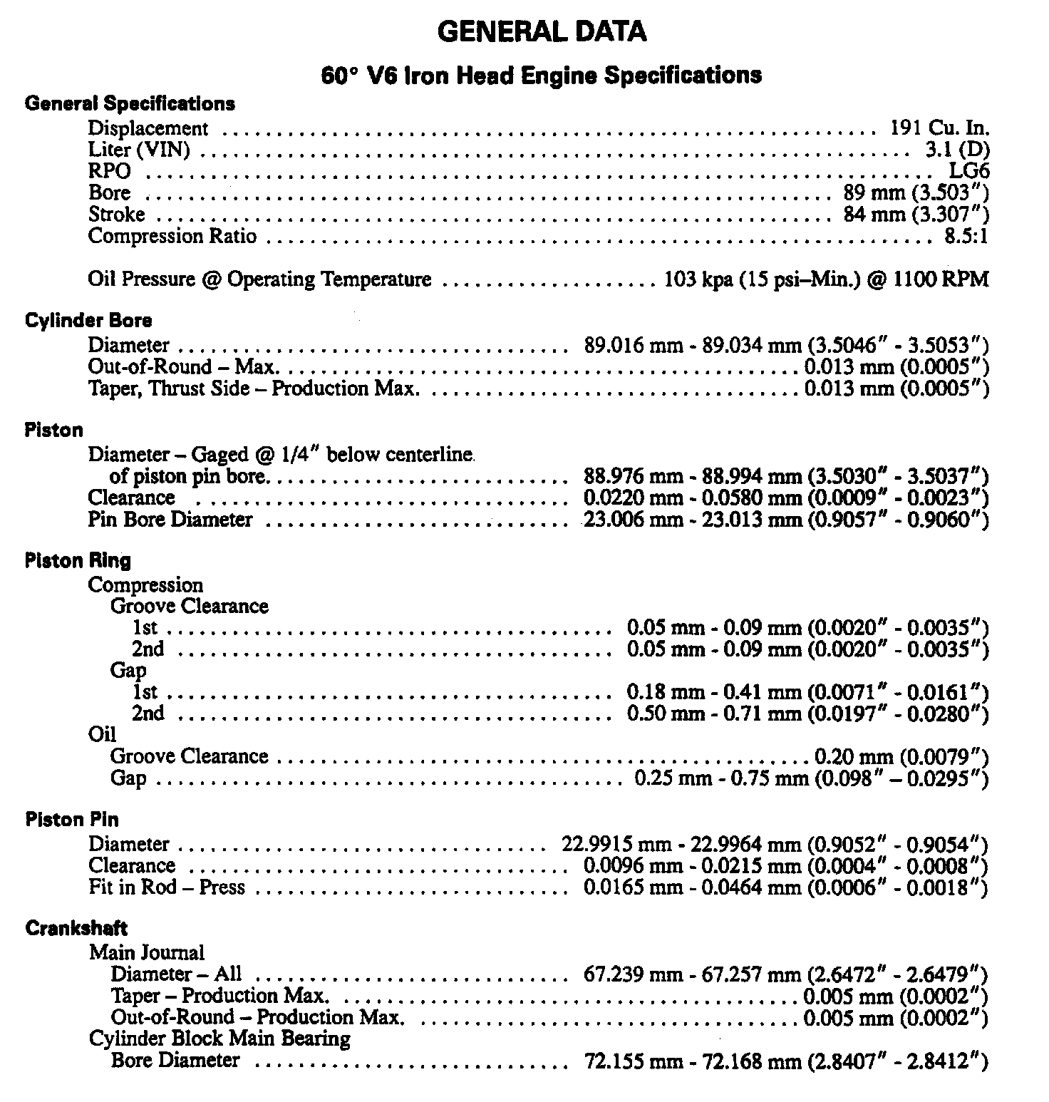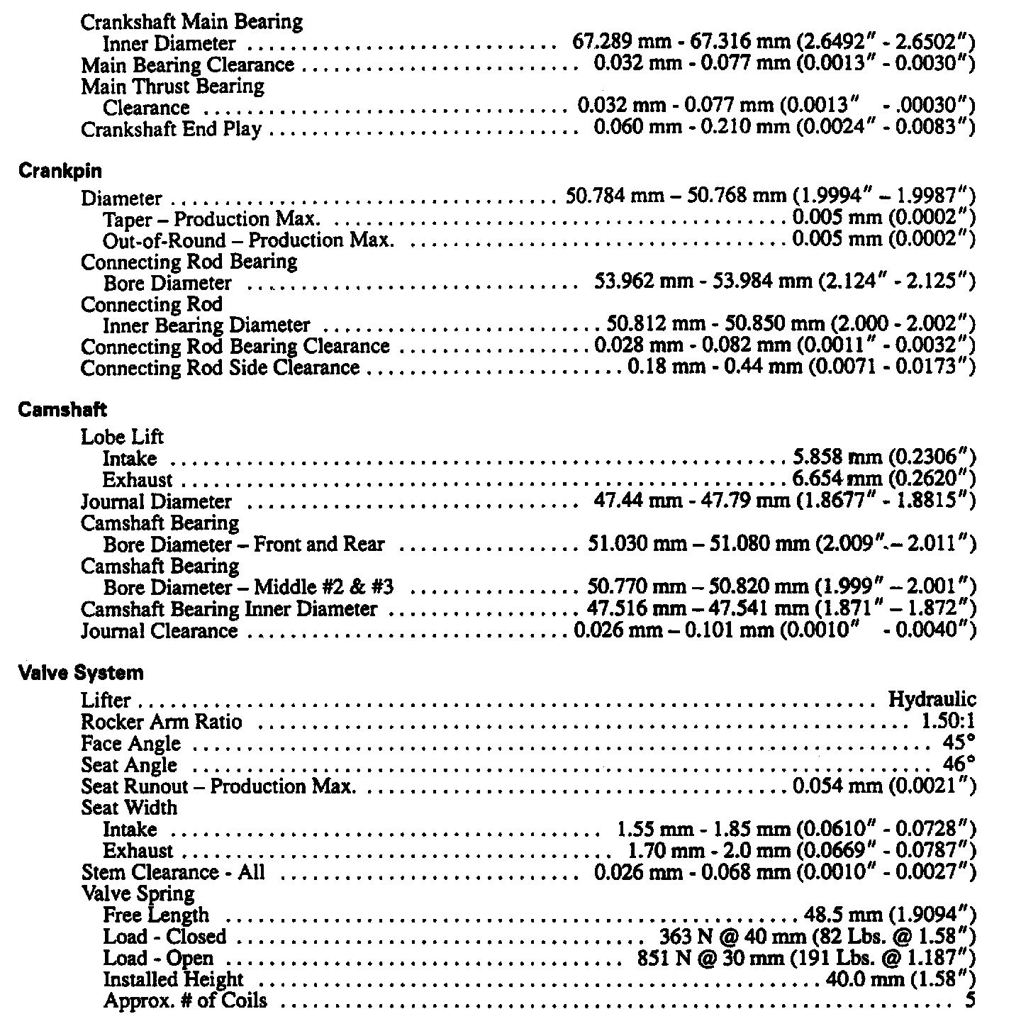 Continued Engine Specifications: