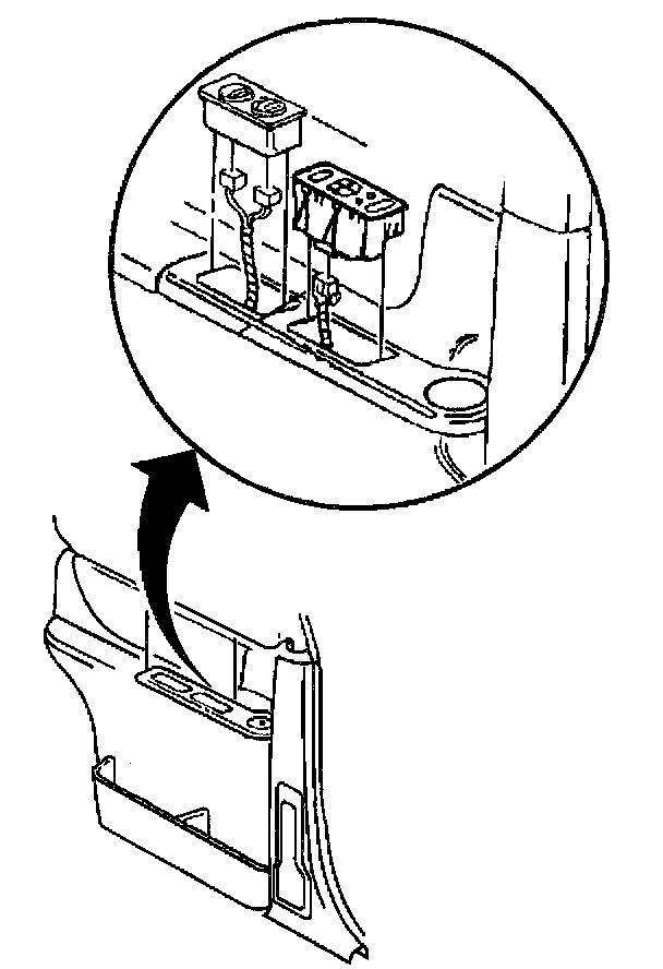 REMOVAL PROCEDURE1. Remove the rear fan/temperature control from the left body side front trim panel using a small flat-bladed tool to pry and release the mounting tabs of the control.