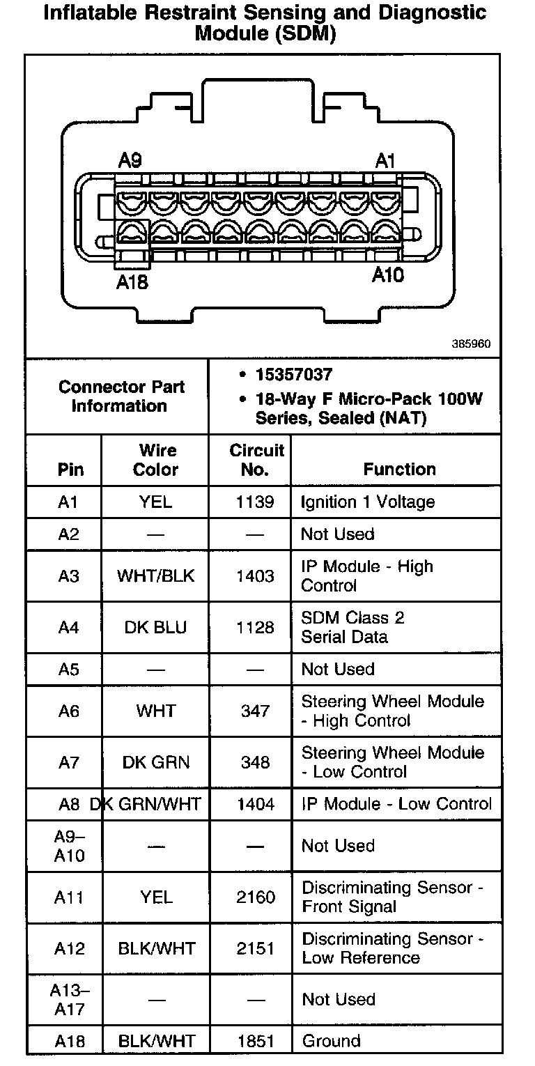 Inflatable Restraint Sensing And Diagnostic Module (SDM):