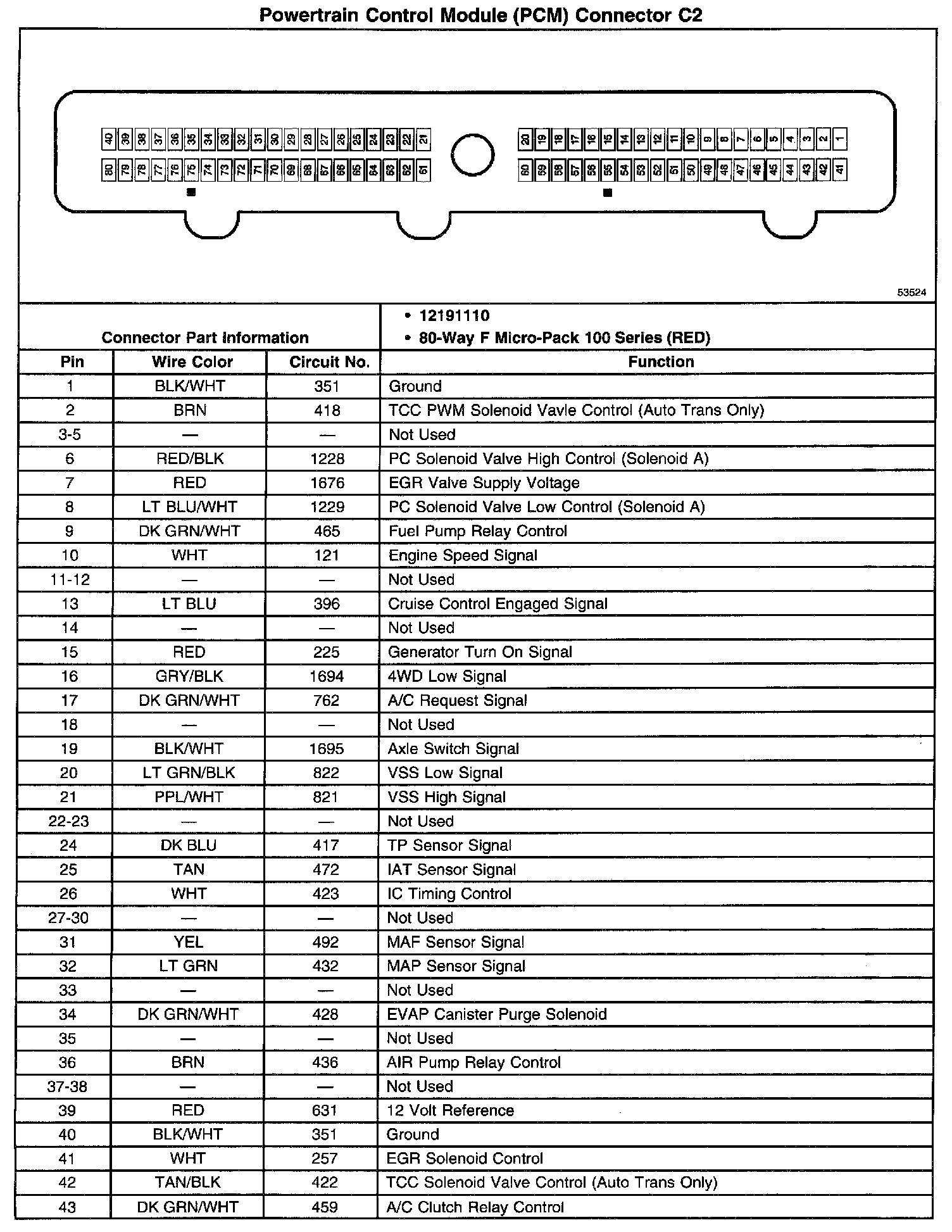 Powertrain Control Module (PCM) Connector C2 (Part 1 Of 2):