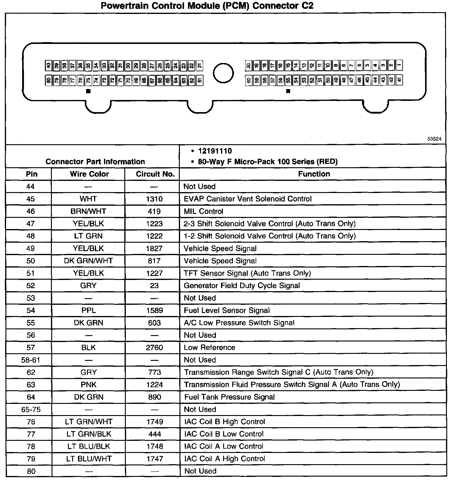 Powertrain Control Module (PCM) Connector C2 (Part 2 Of 2):