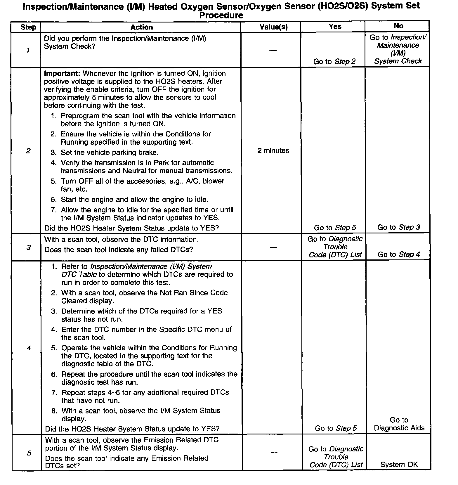 I/M HO2S/O2S System Set Procedure