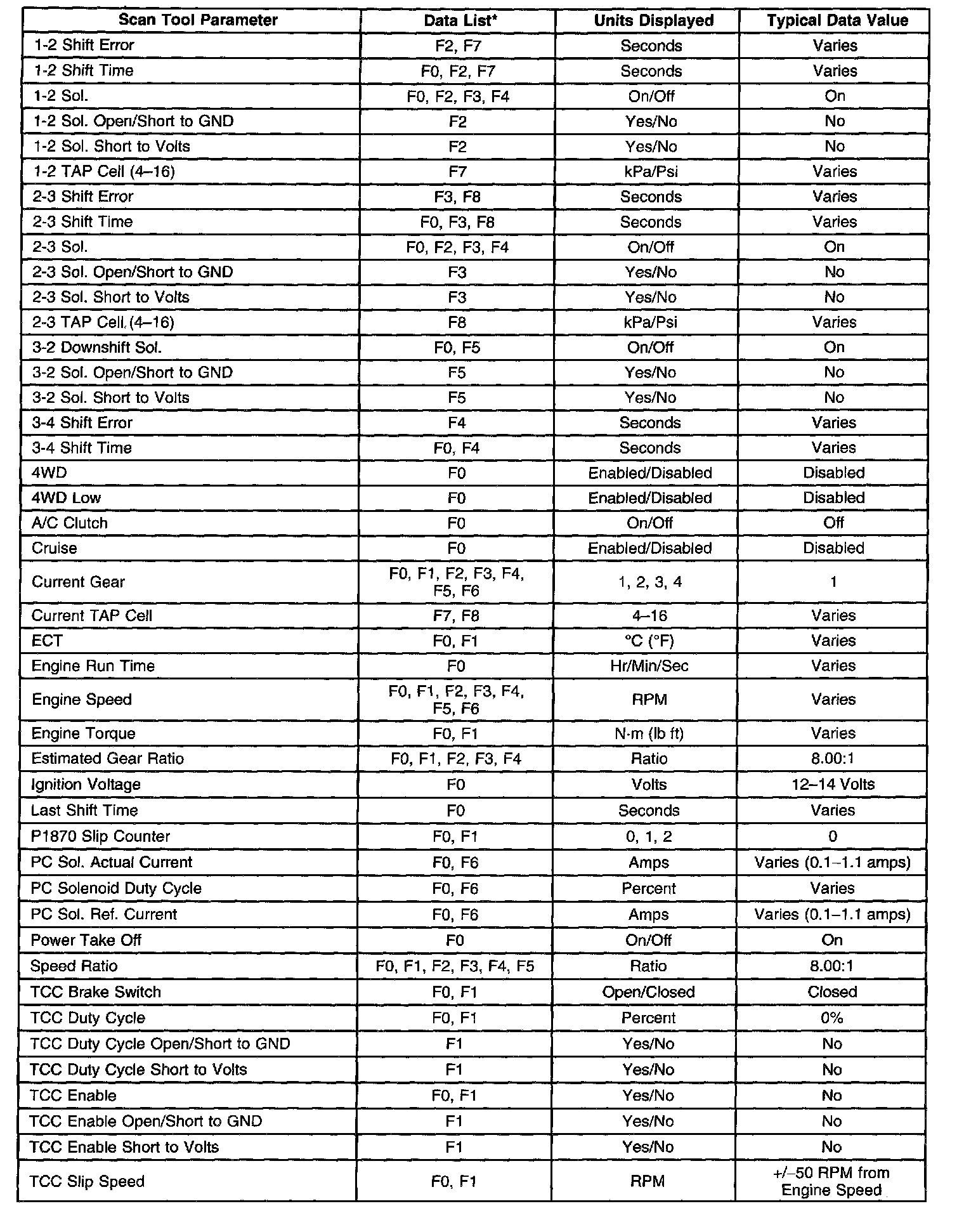 Only the parameters listed below are used for diagnosing. If a scan tool displays other parameters, the values are not recommended by General Motors for use in diagnosis.