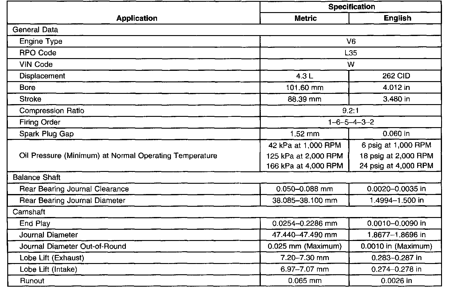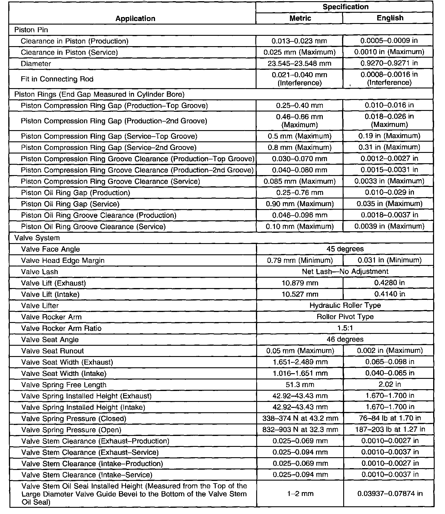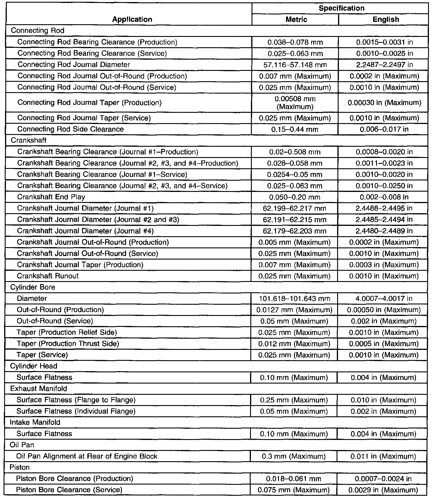 Engine Mechanical Specifications