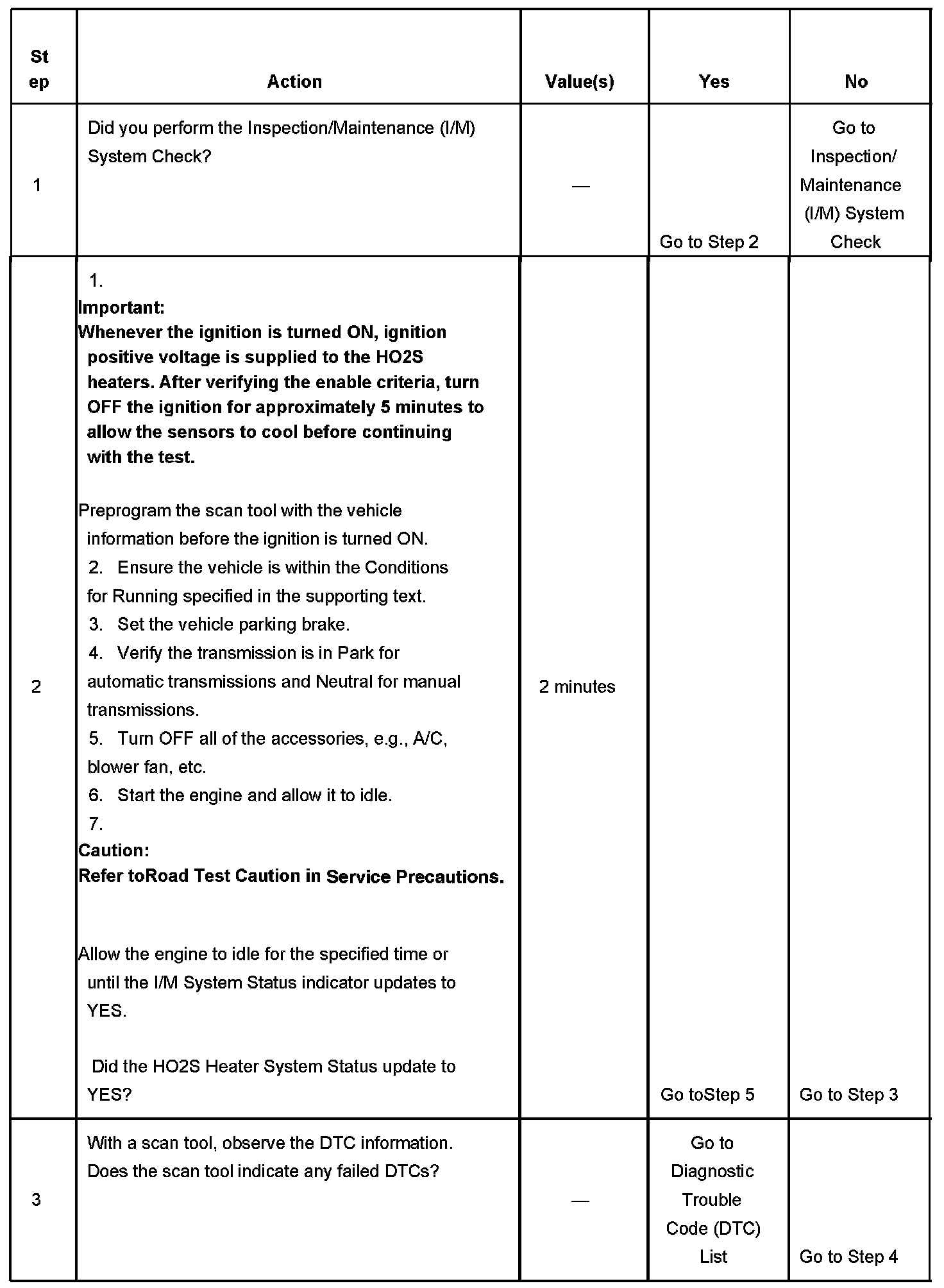 The purpose of this test is to satisfy the enable criteria necessary to execute I/M readiness diagnostics for the heated oxygen sensor (HO2S) system. The test may be used to set the I/M System Status to YES. Ensure the vehicle meets the requirements listed in Conditions for Running before performing this test. Failure to meet the necessary requirements may produce inaccurate test results.
