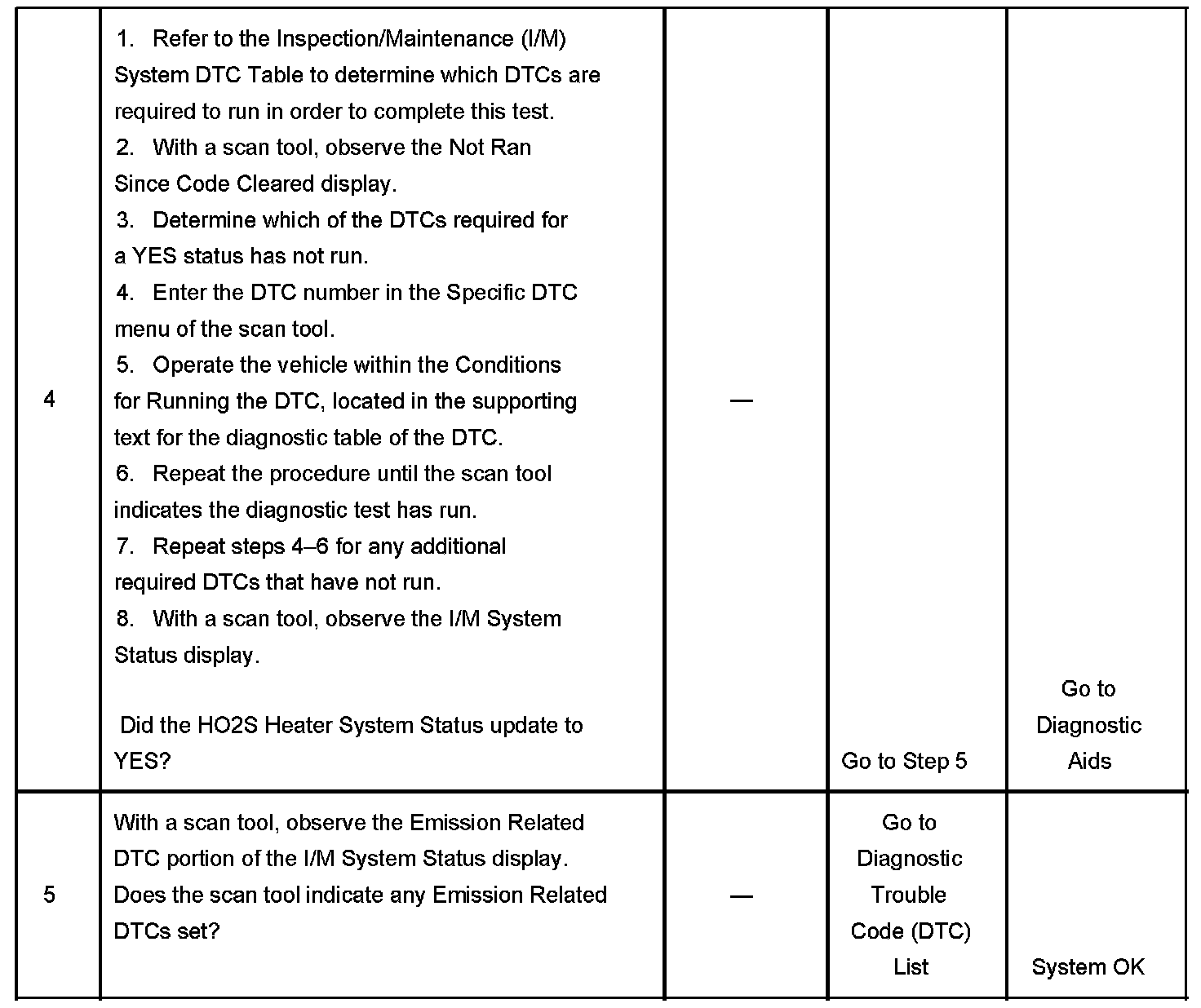 5. The I/M System Status only reports on whether or not a diagnostic has run, not what the outcome of the test was. If any emission related DTC sets after the tests are complete, the DTC will require diagnosis.