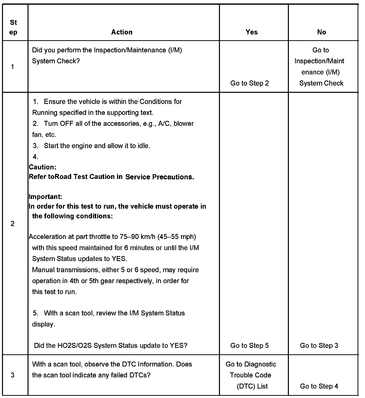 1. Make sure you perform the I/M System Check before performing this test. Failure to do so may result in difficulty updating the status to YES. Inspection/Maintenance (I/M) System Check