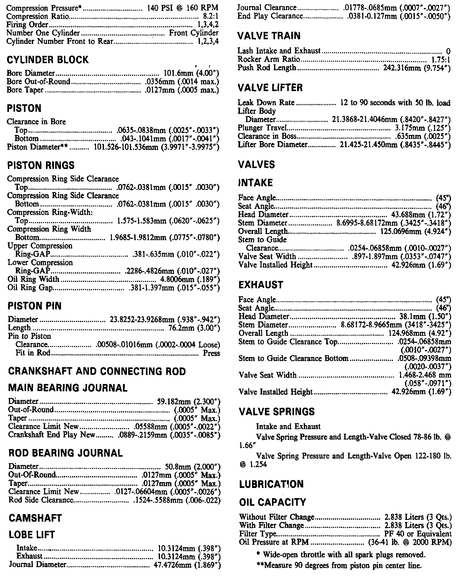 Engine Specifications: