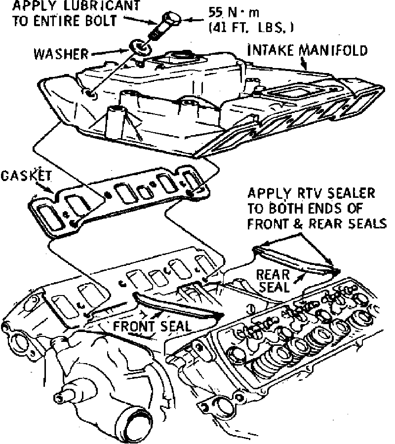 1. Thoroughly clean machined surfaces of cylinder head and intake manifold, ensuring neither surface becomes gouged or scratched. Clean all bolts and bolt holes.