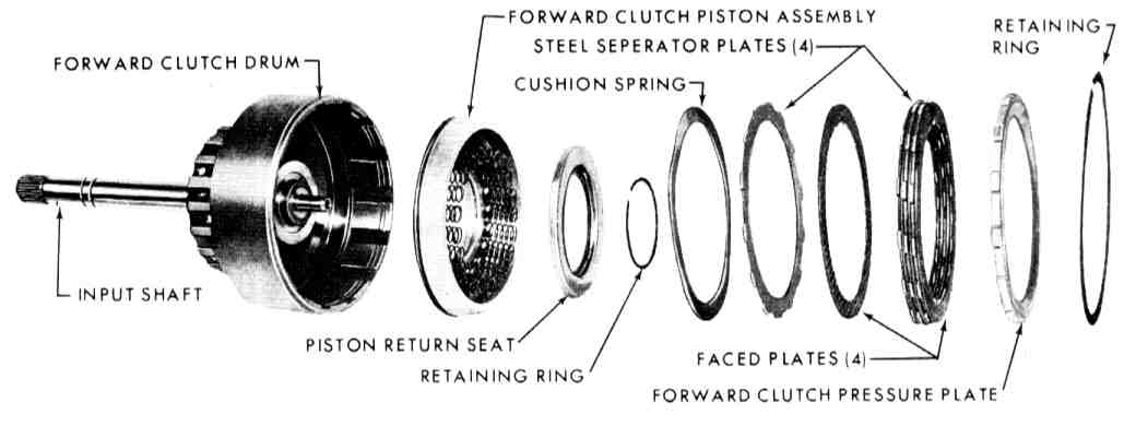 1. Compress forward clutch drum spring seat, remove snap ring, spring seat and springs.