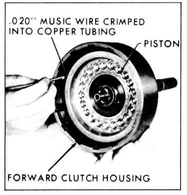 3. After replacing seals, install piston with the aid of a piece of .020 inch wire crimped into copper tubing.
