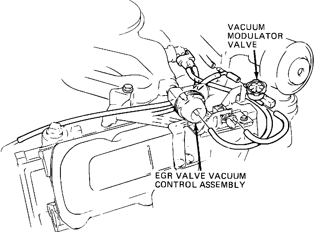1. Replace the EGR valve vacuum control assembly and vacuum modulator valve with the assemblies listed in the Parts Information section of this bulletin.