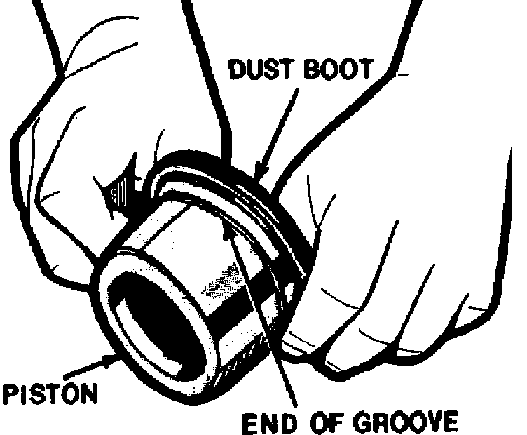 2. Lubricate piston with clean brake fluid and assemble a new boot into the groove in the piston so the fold faces the open end of the piston, Fig. 7.