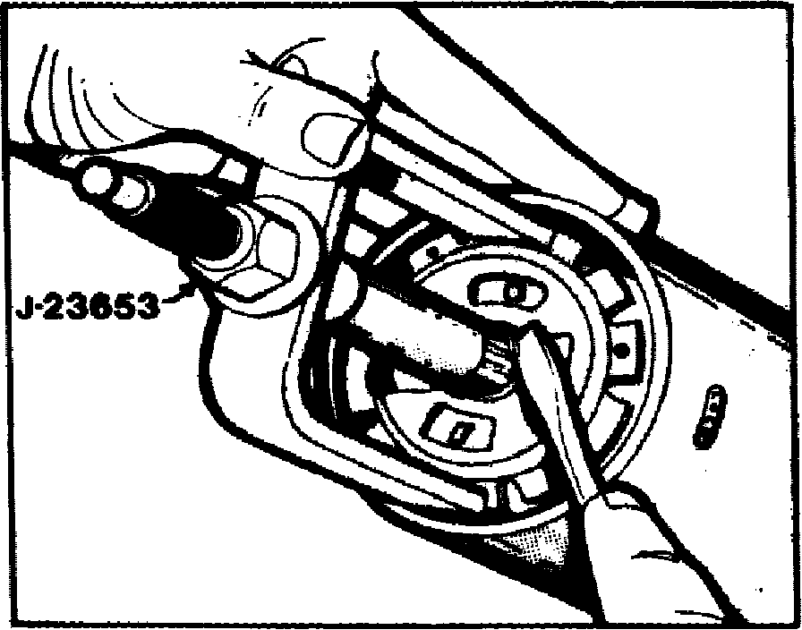 12. Remove turn signal switch attaching screws, then pull switch and wiring from top of column.