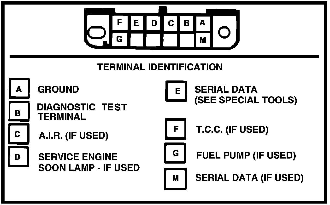 If the test lead is grounded with engine running, the ECM will control system operation as follows: No trouble codes will be set, "Open Loop" timer, start-up enrichment and blended enrichment will be deactivated and a 30° dwell signal will be sent to MC solenoid. Grounding the test lead with the ignition "ON" and engine "OFF" will cause the ECM to display any stored trouble codes.
