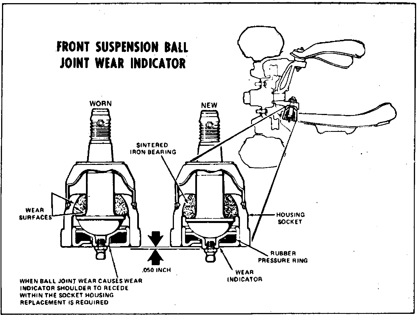 1. Upper ball joint should be replaced if looseness exceeds .125 inch. A wear indicator is built into the lower ball joint, Fig. 4.