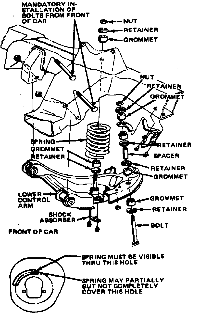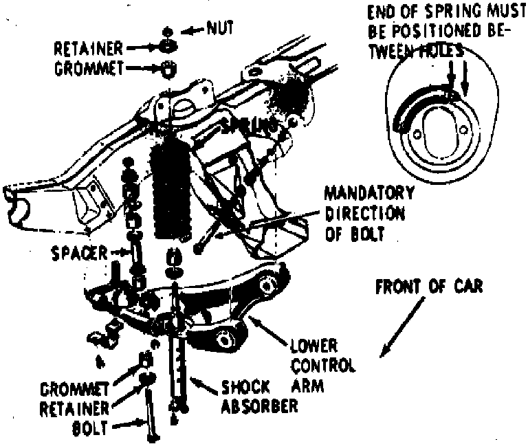 As shown in Figs. 1 and 2, the front suspension is of the conventional ``A'' frame design with ball joints. Double acting shock absorbers are mounted within the coil springs. Caster and camber are controlled by shims.